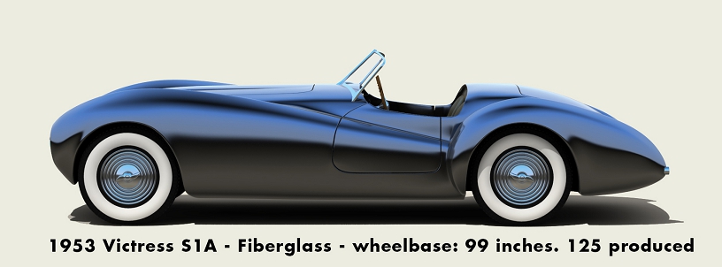 In early 1952, Hugh Jorgensen and Doc Boyce-Smith designed the Victress S1 Roadster. Doc wanted a car that would – out Jag the Jaguar XK120. To this end, they used a horizonal grill as opposed to the vertical Jaguar grill, rounded sides instead of slab sides, a more-defined rear fender, the same wheelbase as the Jaguar, but wider track for American running gear.