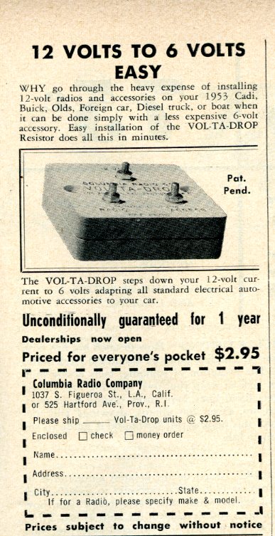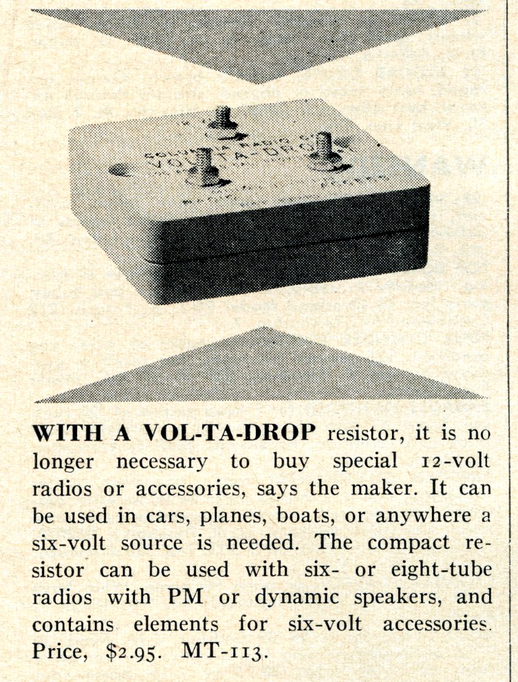 The Vol-Ta-Drop – converts 12 volt power from car battery and delivers 6 volt power to vintage accessories