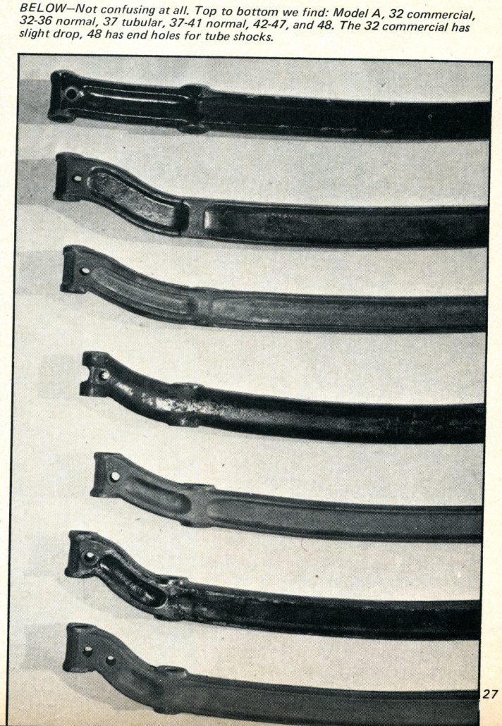 - This is My Favorite Photo and Caption in the Article Which Describes the Year of Each Axle as From Top to Bottom: 1: Model A; 2: 1932 Commercial; 3: 1932-1936 Normal; 4: 1937 Tubular; 5: 1937-1941 Normal, 6: 1942-1947 Normal; 7: 1948 Normal. The 1932 Commercial Has a Slight Drop, and the 1948 Has End Holdes for Tube Shocks.