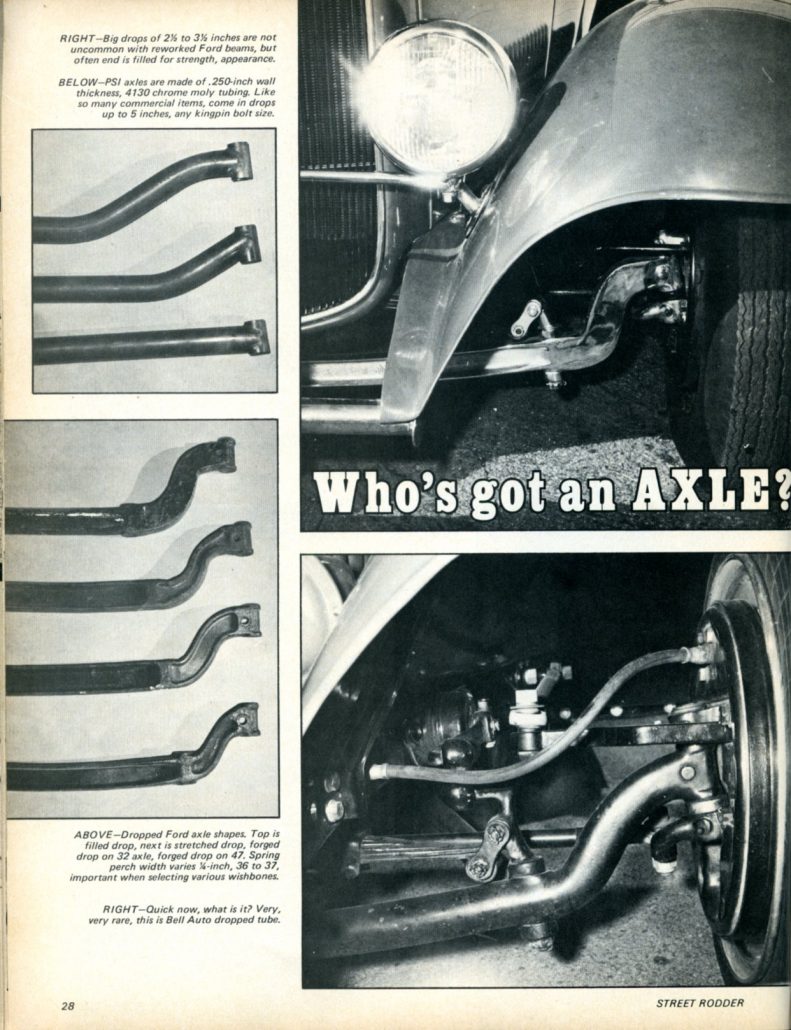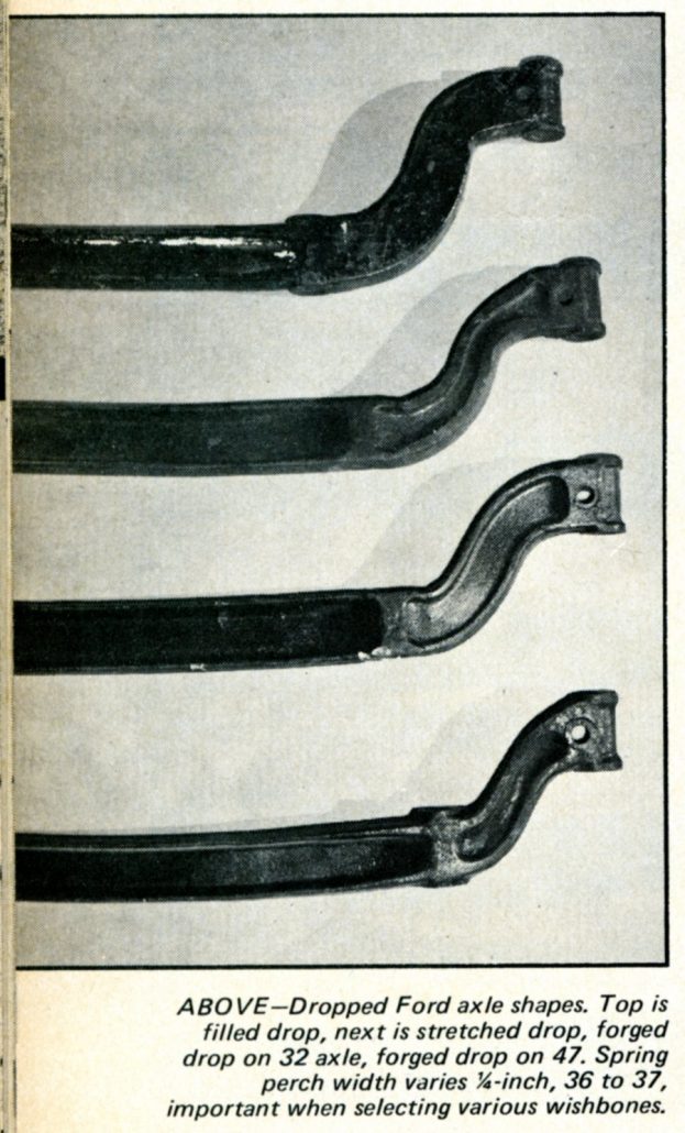 - Here Are Some Examples of Drop Axles: 1: Filled Drop Axle; 2: Stretched Drop Axle; 3: Forged Drop on 1932 Axle; 4: Forged Drop on 1947 Axle.