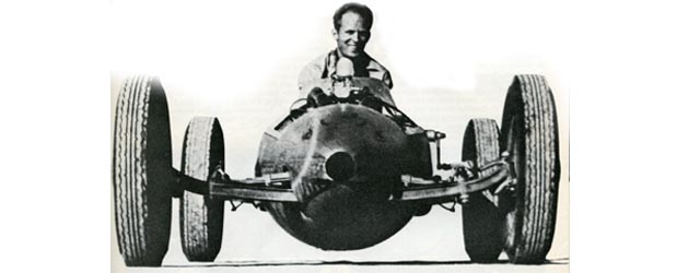 The opening picture shows Bill Burke in his 1946 Belly Tank Streamliner. Make no mistake about this picture – the relevance for our fiberglass sports cars is all in the axles, and what better picture to show than Burke and his first tank where the front axle jumps out at you and is undeniably critical to the build of his 1946 Streamliner.