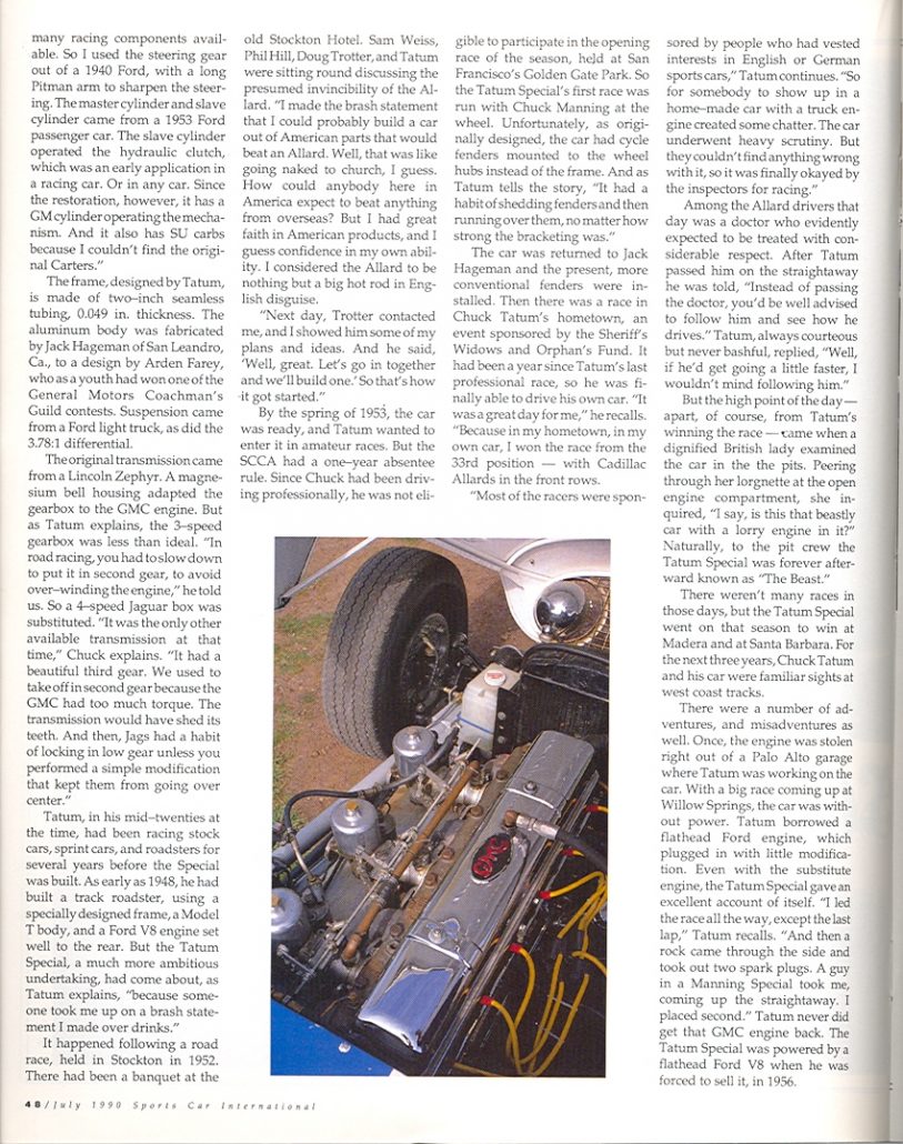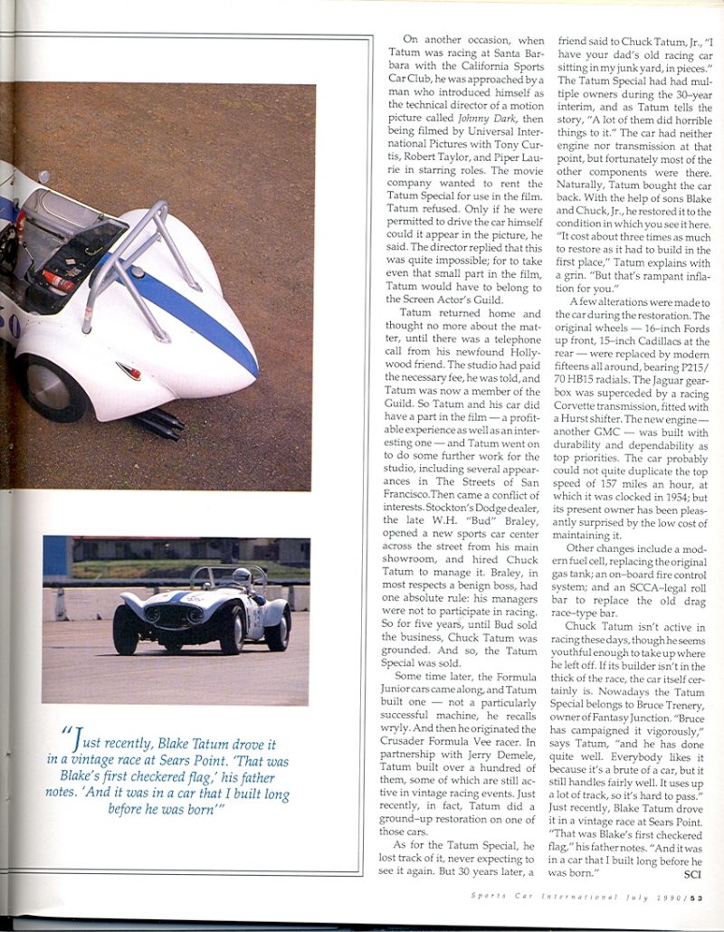 The best article I’ve found so far was printed in the July 1990 edition of “Sports Car International”. It’s a great read and worth every minute if you take the time to review the article below. I encourage you to do so – you’ll learn more about Chuck and his car as well.