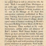 Thanks again to Stan Mott for sharing his story, pictures, and talent with us today – and for all years previous. Be sure to checkout the review of Stan’s work and life published in Top Gear Magazine in December 2001 as well as the June 1979 Road and Track short bio – both are posted below for your review and enjoyment.