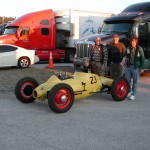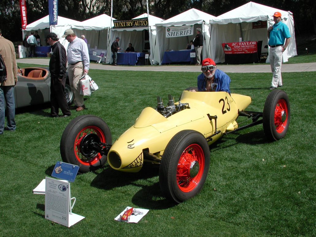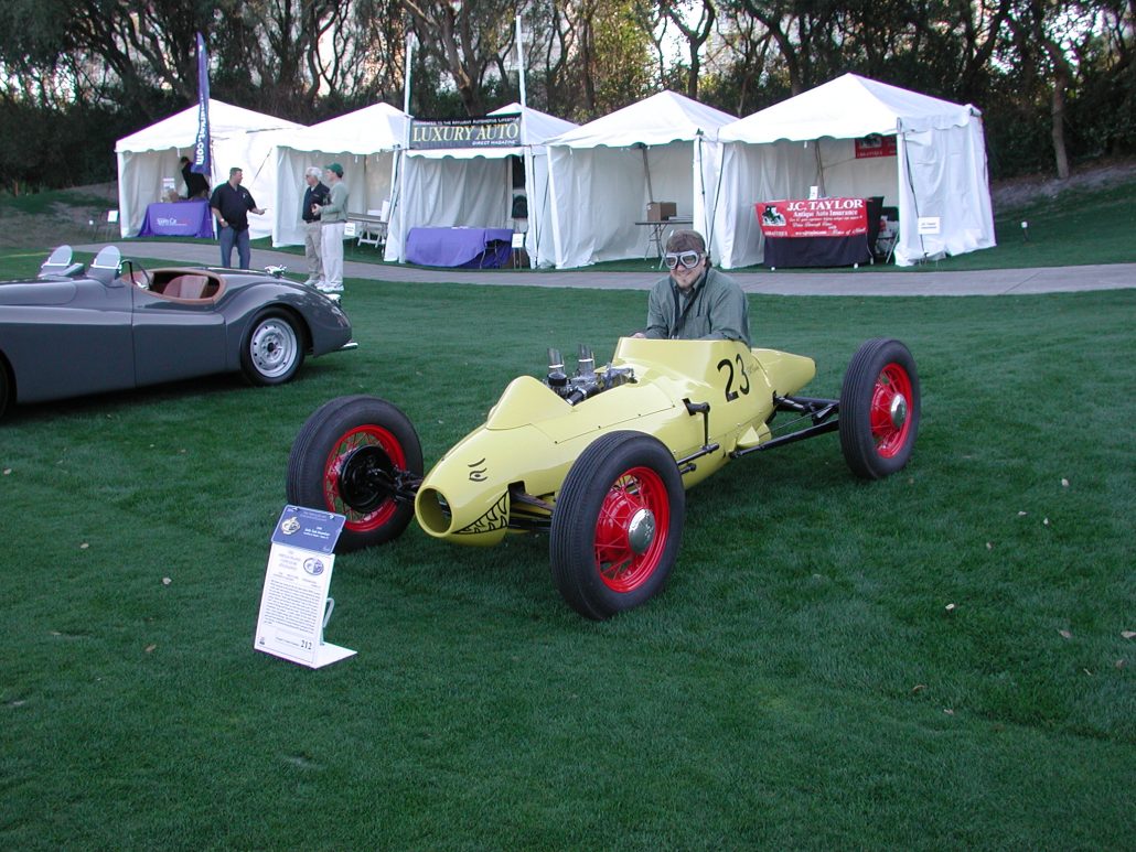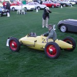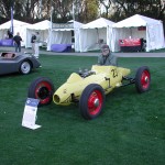 Below is a collection of photographs from Amelia, and we had a ball showing it there. And I think, the crowds of people may have enjoyed it more. One of the things I try and do at any event is invite people – especially kids and young adults – to get into the car (in this case, belly tank) and try it out. I can tell you, this has been a hit everytime I’ve done it, and I encourage those of you to try and do this – where it make sense for the car and the event. And for both the Bonneville August 2009 event and Amelia Island Concours d’Elegance in March 2010 – we brought the requisite goggles too! Now….put together the goggles with the fact that the Burke Belly Tank was built with a vintage leather “bicycle seat” from the 1940’s welded to the torque tube – and you have one unique experience!