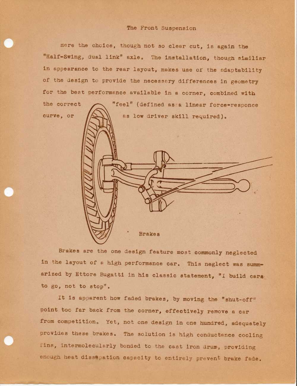 Brakes are the one design feature most commonly neglected in the layout of a high performance car.  This neglect was summarized by Ettore Bugatti in his classic statement: