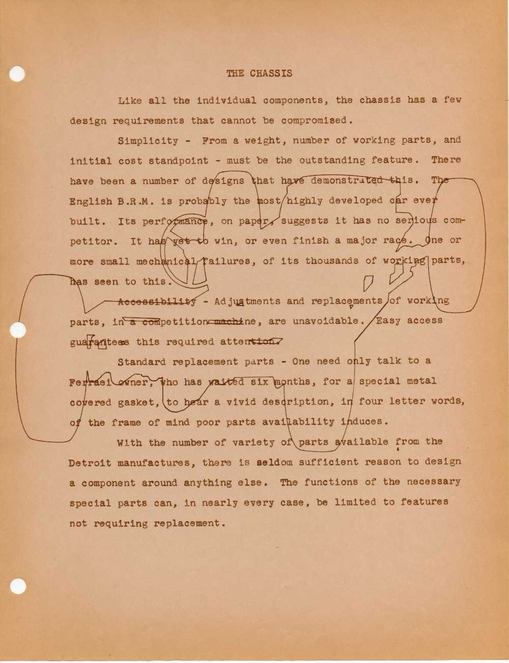 This booklet by Manning seems to be an early attempt at writing an article which I think would have led to the series of articles that he wrote for Road & Track.  The body of the writing isn’t of great consequence when compared to what he finally wrote in Road and Track but is filled with great illustrations of what he was thinking when he was designing his car.
