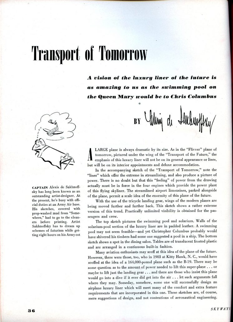 Let’s take a look at what “Captain Alexis de Sakhnoffsky” had to say about his vision for the transportation of tomorrow in January, 1943.