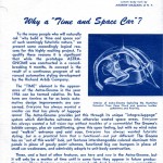 This is the kind of advanced thinking that went into the creation of the Astra-Gnome and that prompted the title “Time and Space Car.” We believe this brief explanation will help you ao appreciate our aims in this fascinating automotive project.