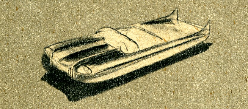 This car, which will probably be featured in the spring at the World and International Motor Sports Shows in New York, represents the fruit of years of experimentation in dream-car design during which he devoted the best of his talents to the creation of the famous Veedol Dream Car Salon advertisements.