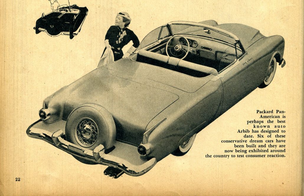 A dreamer is anything but a practical man – supposedly. Richard Arbib, one of America’s foremost designers of futuristic cars is, however, a successful exception to the rule. For years he has dreamed up and drawn various products the way he would like them to look and industry has accepted his ideas with enthusiasm.
