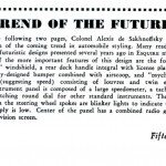 “The Count” penned several articles starting with the first issue of Motor Trend. His first column was titled “Trend of the Future” and it appeared each month with new designs of interest to the public. Here’s how his first designs were introduced to the Motor Trend faithful: