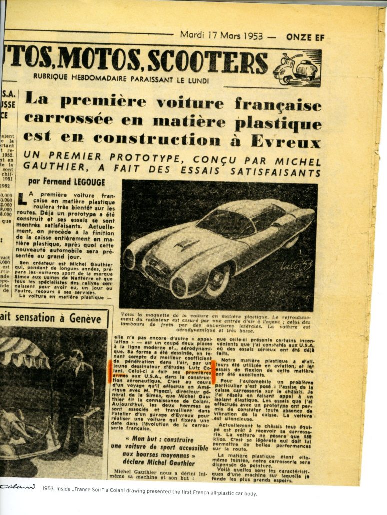 - 1953 Newspaper Article presenting a Colani Design for the First French All-Plastic Car – What a Coup!