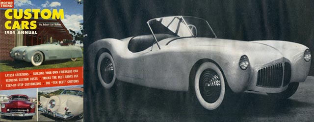 Note: This is the second in a series of stories about the fiberglass sports cars that appeared in the 1954 Custom Cars book by Motor Trend. Click here to review each of these stories on Forgotten Fiberglass.
