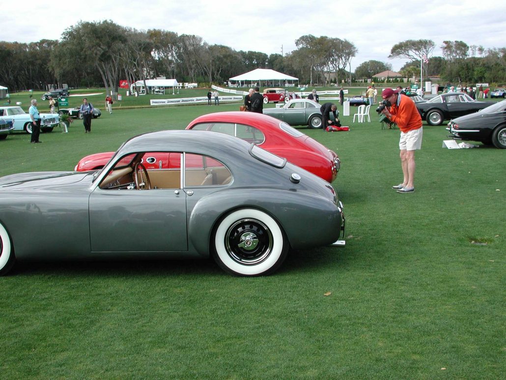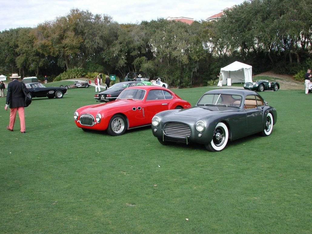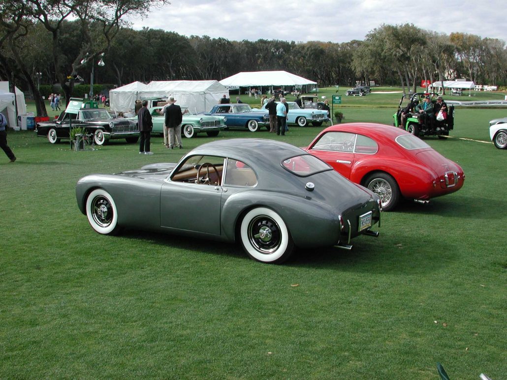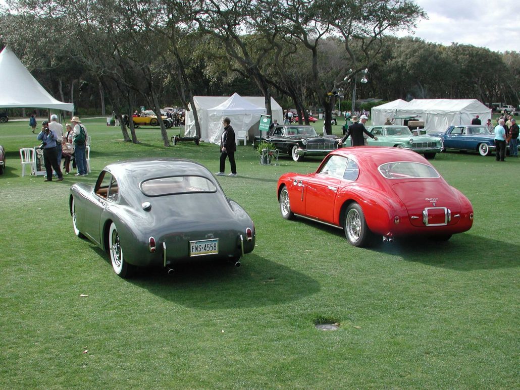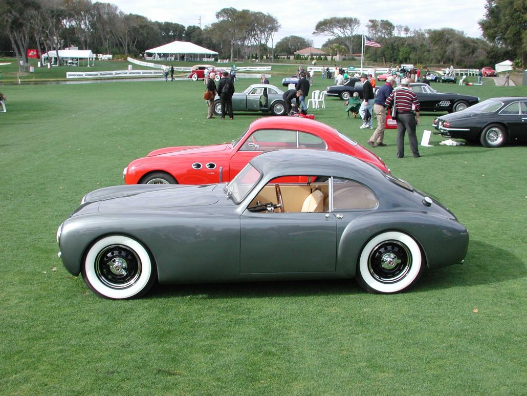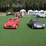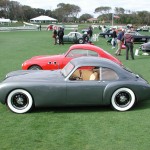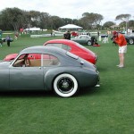 First, at the 2010 Amelia Island Concours d’Elegance, Darren Crispin, owner of the Allied / Multiplex Swallow coupe was able to hook up with the owner of a Cisitalia 202 Coupe. Thanks to their generosity, they allowed me to shoot photos of their cars together, and these are presented for you at the bottom of this story.