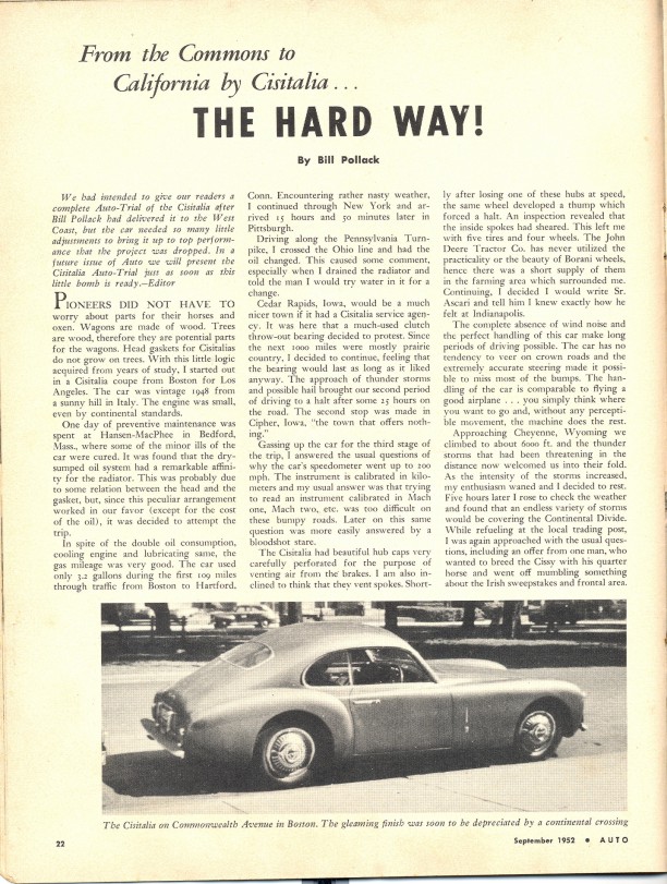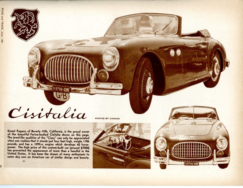 - 1951 Road and Track Article on Cisitalia. The “Cissy” Was Around $7000 Back Then!