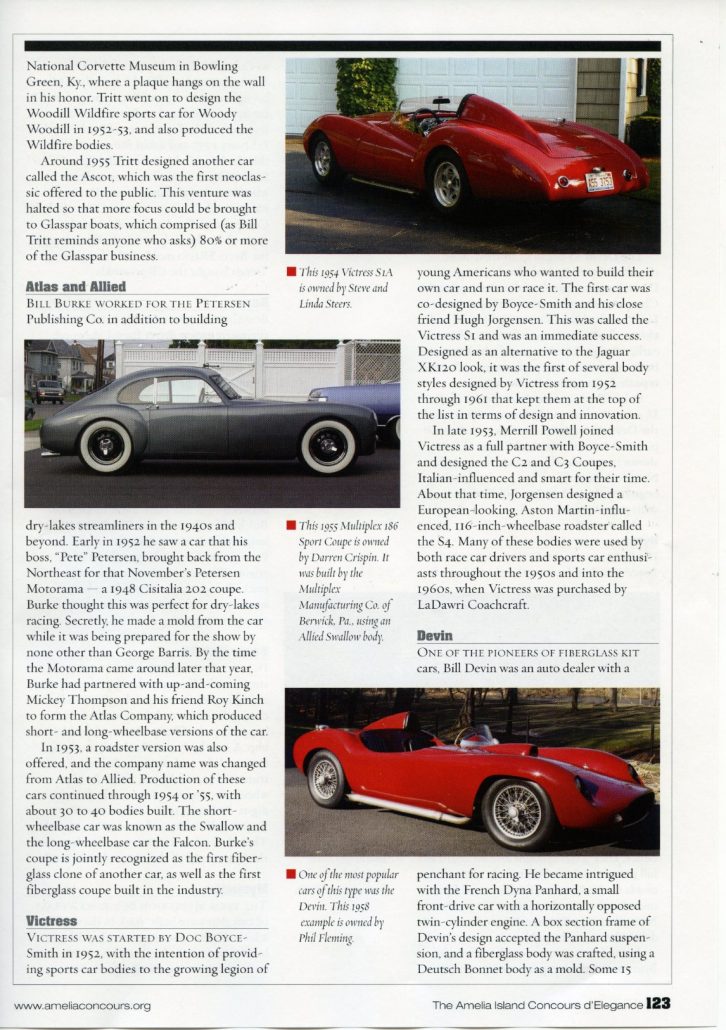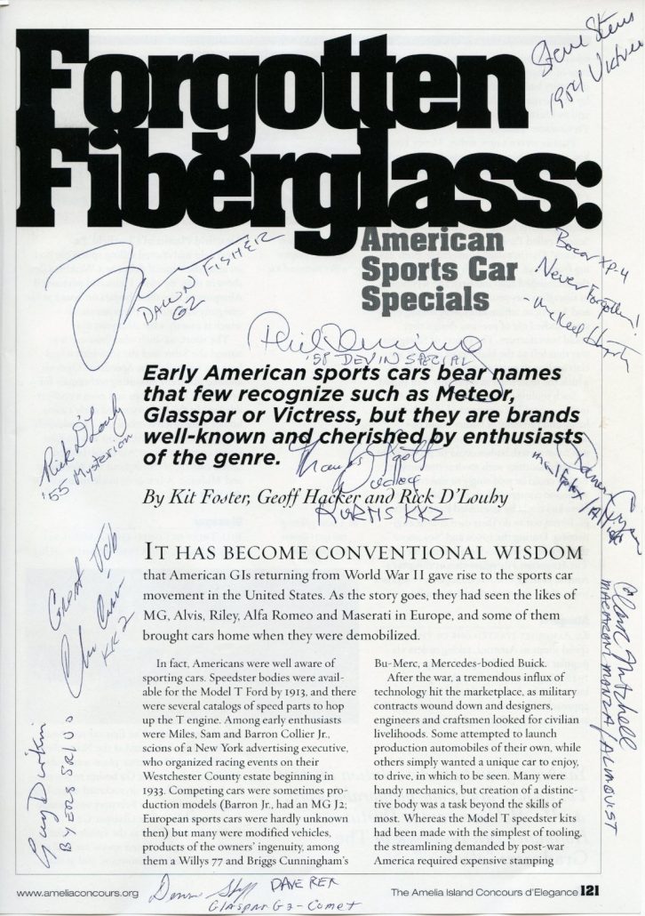 Thanks to Bill Warner and Tom Cotter of Amelia Island Concours d’Elegance, we have permission to share the article about the Forgotten Fiberglass Class that was part of the event program all attendees received on March 14th, 2010.