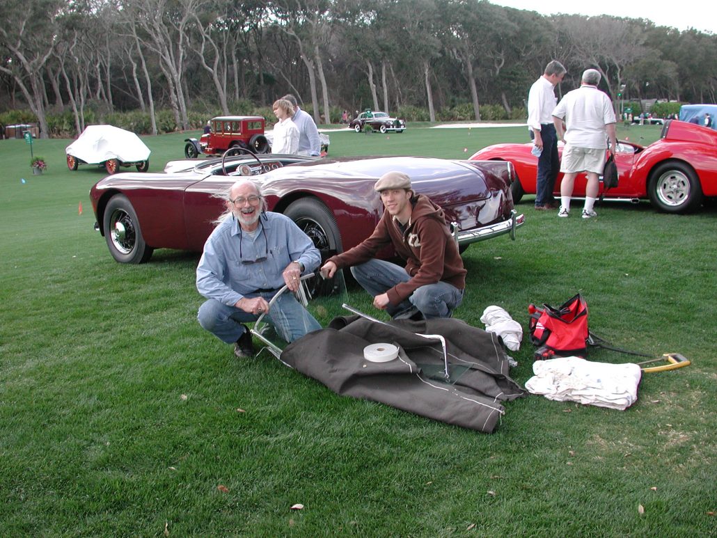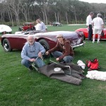 And…to add spice to this Spring, Rick D’Louhy and I succeeded in completing the restoration on the 1955 California Sports Special with a gang of experts (Scott Miller of Tampa, Jonathan Rucker of St. Petersburg, Tom Jaudon of Tampa, Tim Masters of Tampa, and a cast of seeming thousands…) in record time too. And Merrill Powell from Victress chipped in during the last few days up to the event, and brought the restoration right on home (with the help of partner Scott Miller). It certainly took the wind out of me just watching all the activity.