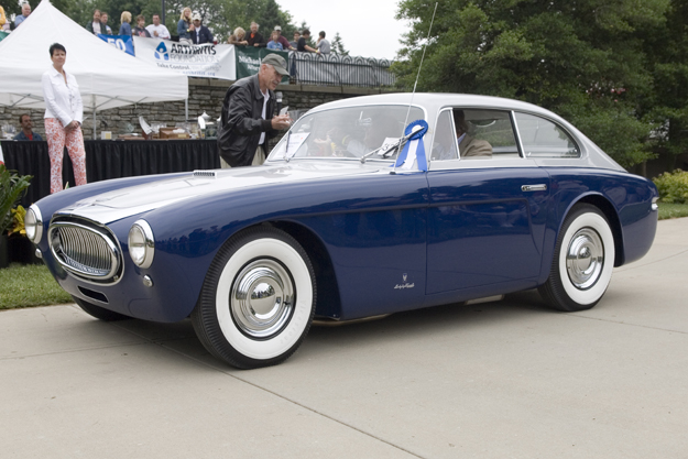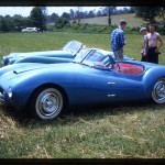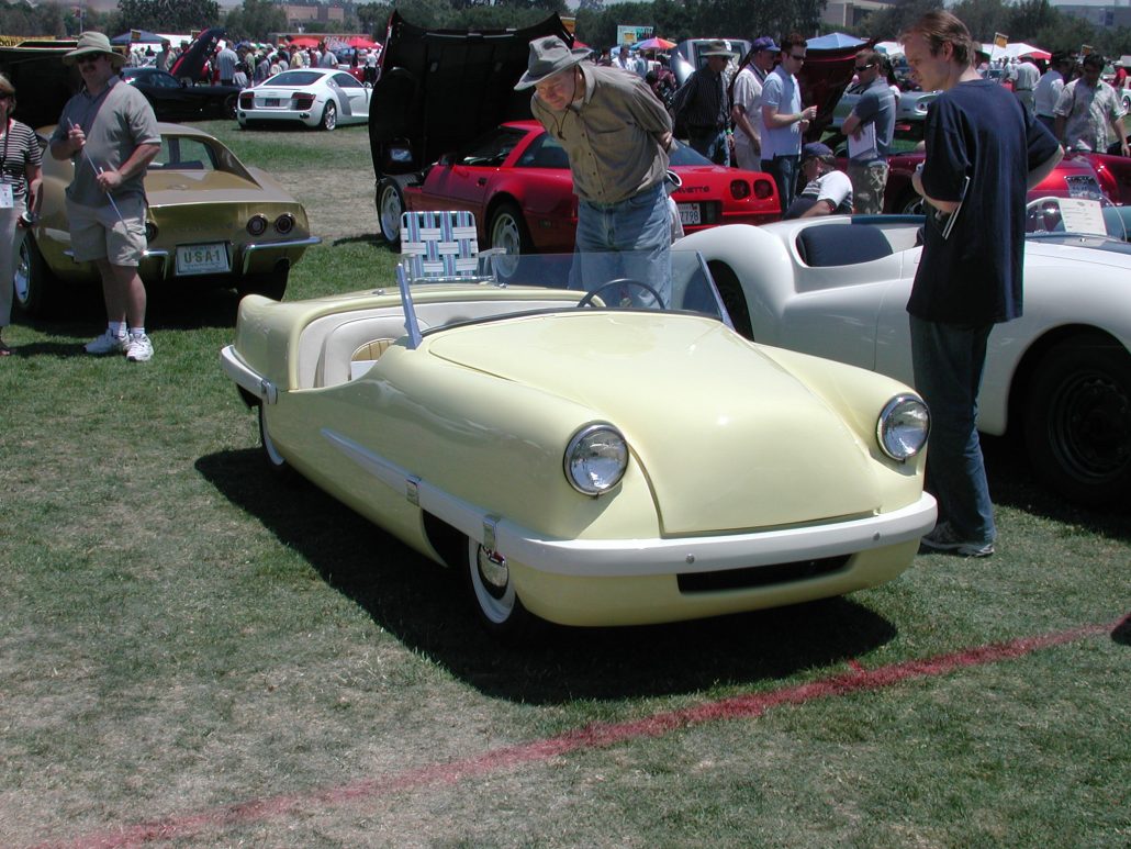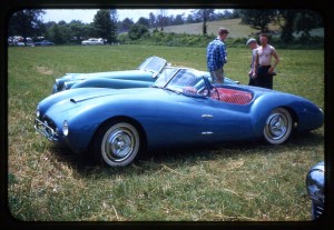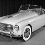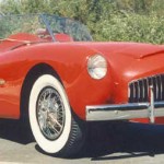 And now…we’re at the start year for vintage fiberglass cars. But first the “1951 Nash Healey” comes into contention. A beautiful scoop appointed in chrome (from what I can tell). Nicely done. But not purely American. Nash-Healey, after all, was a British/American hybrid. So we exclude this one. We’re looking for the first purely American car with a hoodscoop – right?