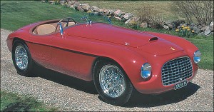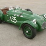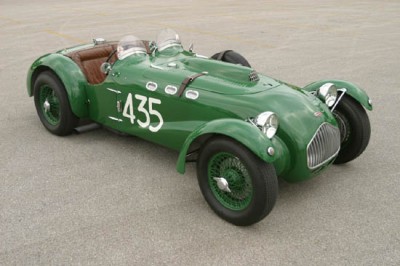 In postwar America, we saw several foreign jobs with hood scoops – an innovative feature on postwar sports cars in every way. Force more air in the engine compartment and preferably where the carbs were to boot. One of the first was the 1949 Ferrari 166 MM Barchetta – a beautifully designed car and a nice neat little scoop front and center. Another foreign job with a hood scoop was the 1949 Allard J2, and you can add the stunning 1949 Healey Silverstone as well. But what about American cars?