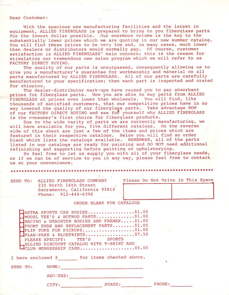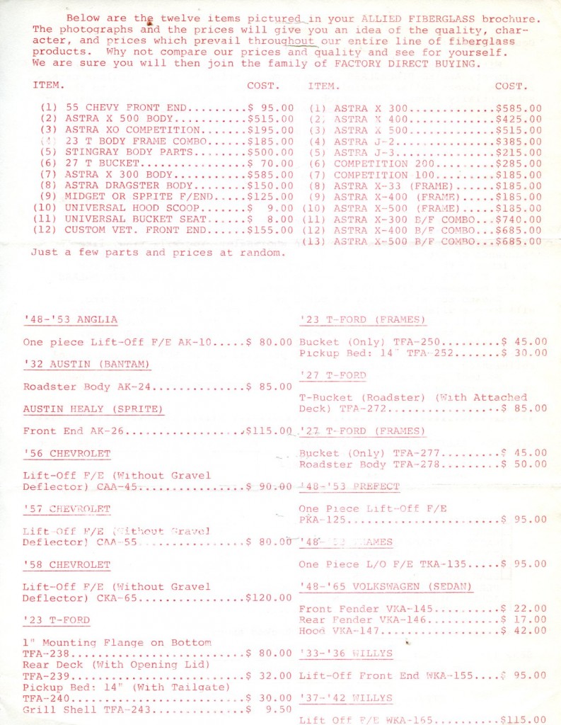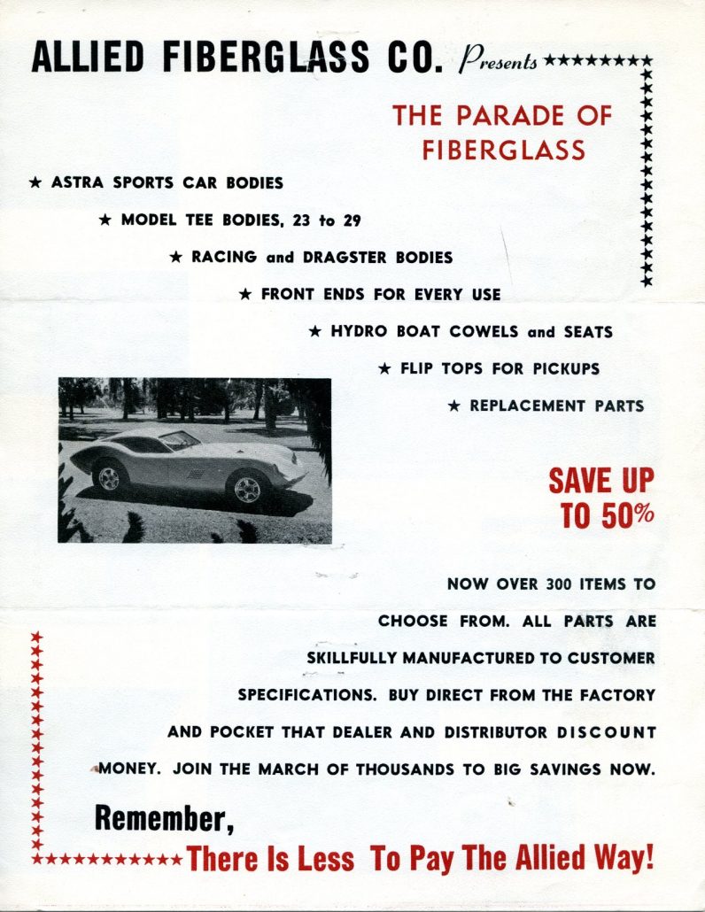 Let’s see what Allied Fiberglass Company had to say in ’65 about the products offered to an enthusiastic public.
