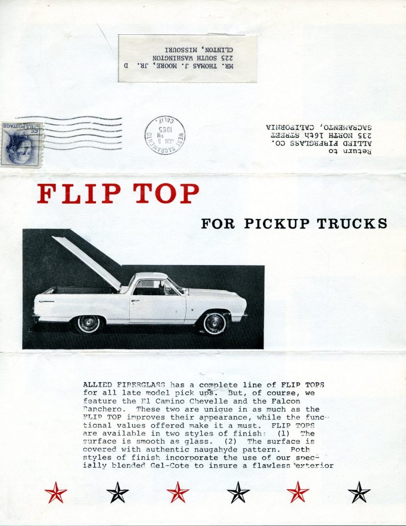 The Flip Top for the Falcon Ranchero was a “knock-off” of the Victress Tip Topper; probably why we didn’t sell too many! We even got a design patent on it. Les Dawes continued to offer the Tip Topper after we sold Victress to La Dawri.