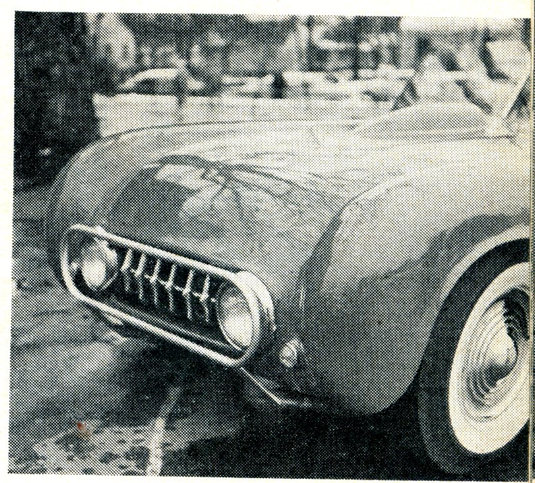 As shown here, he redesigned the rear fenders, molding in fins which give the Glascar a look all its own. He did away with the wraparound windshield, using a vee-type instead. Headlights were taken out of the front fenders and placed in the grille, a la Nash.