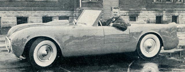 Another Midwest built fiberglass sports car from the 50’s. How fun and exciting to share in every way! This one has an interesting history and was one of a breed of fiberglass cars built in the Midwest – something that did happen to the tune of about 10-15 unique designs during this era.