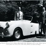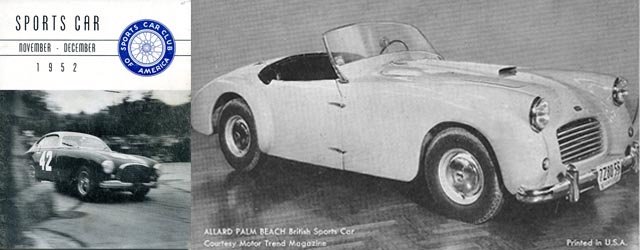 From Sports Car Magazine (SCCA) Nov.-Dec.1952: Ted Jones of Anchorage Plastics (Warren, Rhode Island), Sidney Allard, and Larry Richards with a new Allard Sports Car which served as a check point on a recent New York rally (Photo by Owen Corning).