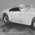 Interestingly, the same publication shows Palm Beach model with the following note: “Early Allard Palm Beach, circa 1952. This is the original design, minus the disappearing head-lights. This is also the design used by Anchorage Plastics to build several fiberglass bodies for Palm Beach chassis. At least one survives today.”