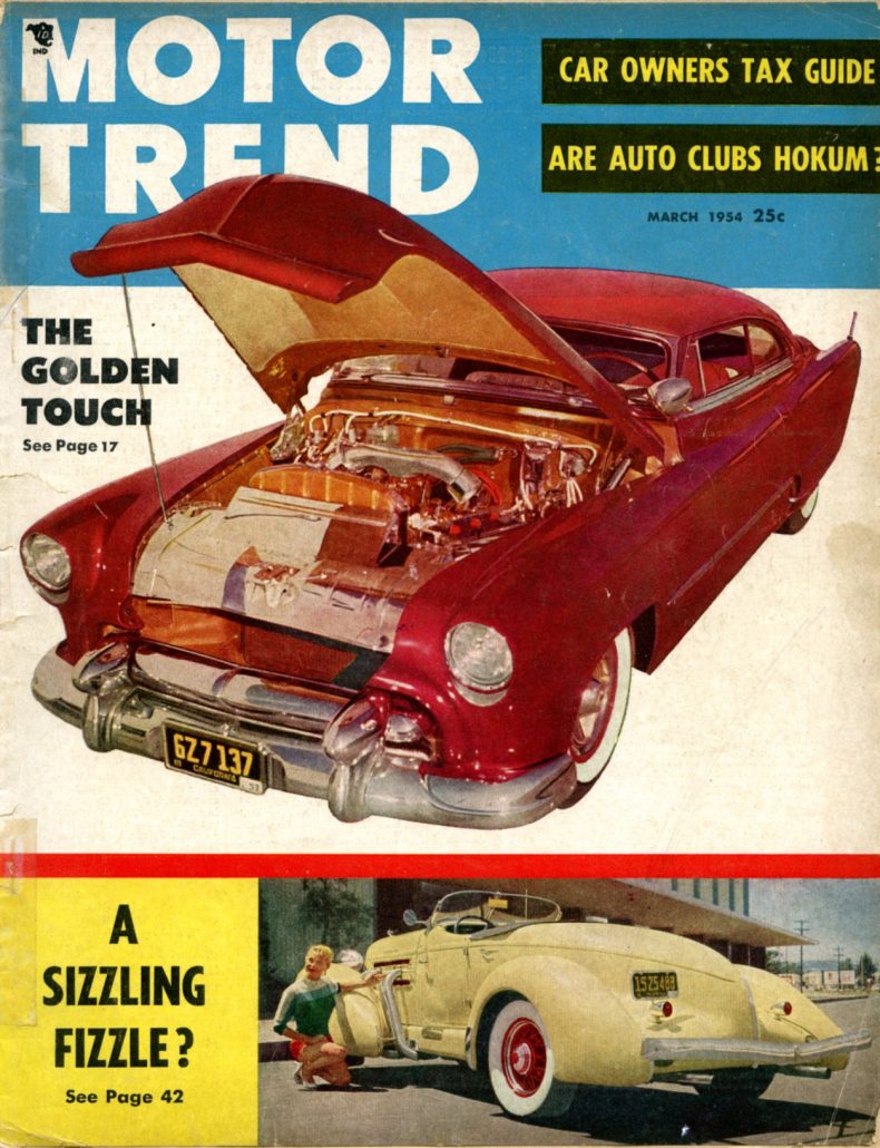 Also, Stan Fowler is building his Wildfire from the ground up with a gorgeous Buick Nailhead engine – and impeccable attention to detail on every aspect of the car. I will write up stories on these cars as the restoration progresses. In the meantime, perhaps the story today can serve as a source of inspiration for both these men. After all, they may just be 14 hours or less away from finishing their cars – according to the March 1954 MOTOR TREND article discussed below.