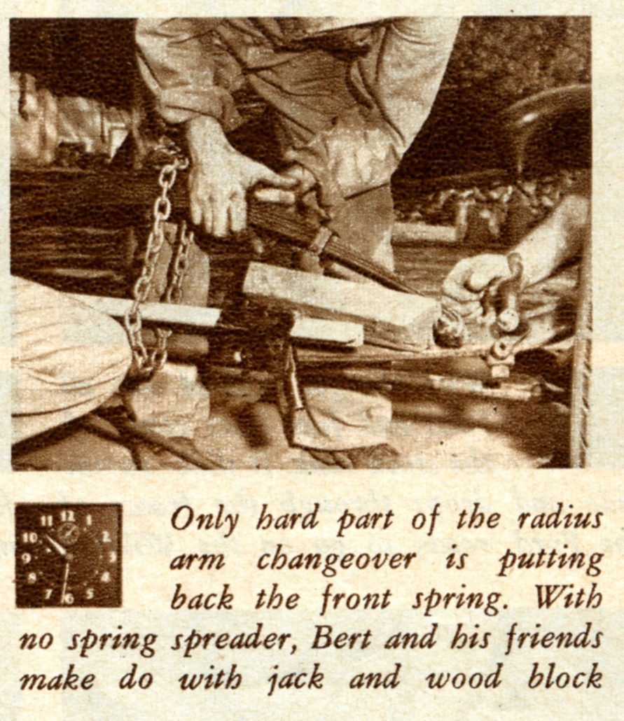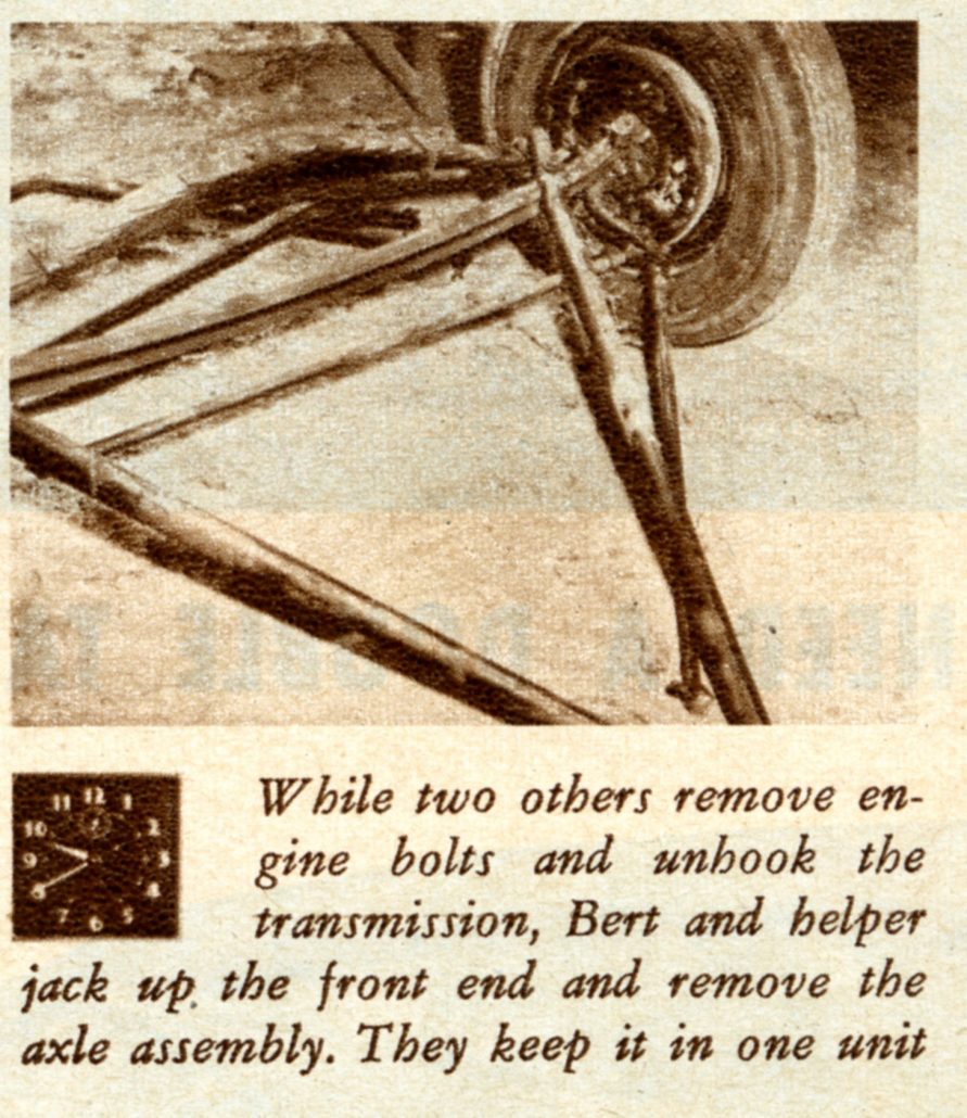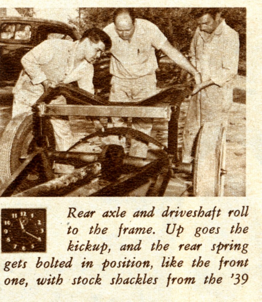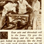 - Here Bert Newport and Two of his Friends Help Attach the Rear Axle and Springs to the Frame.