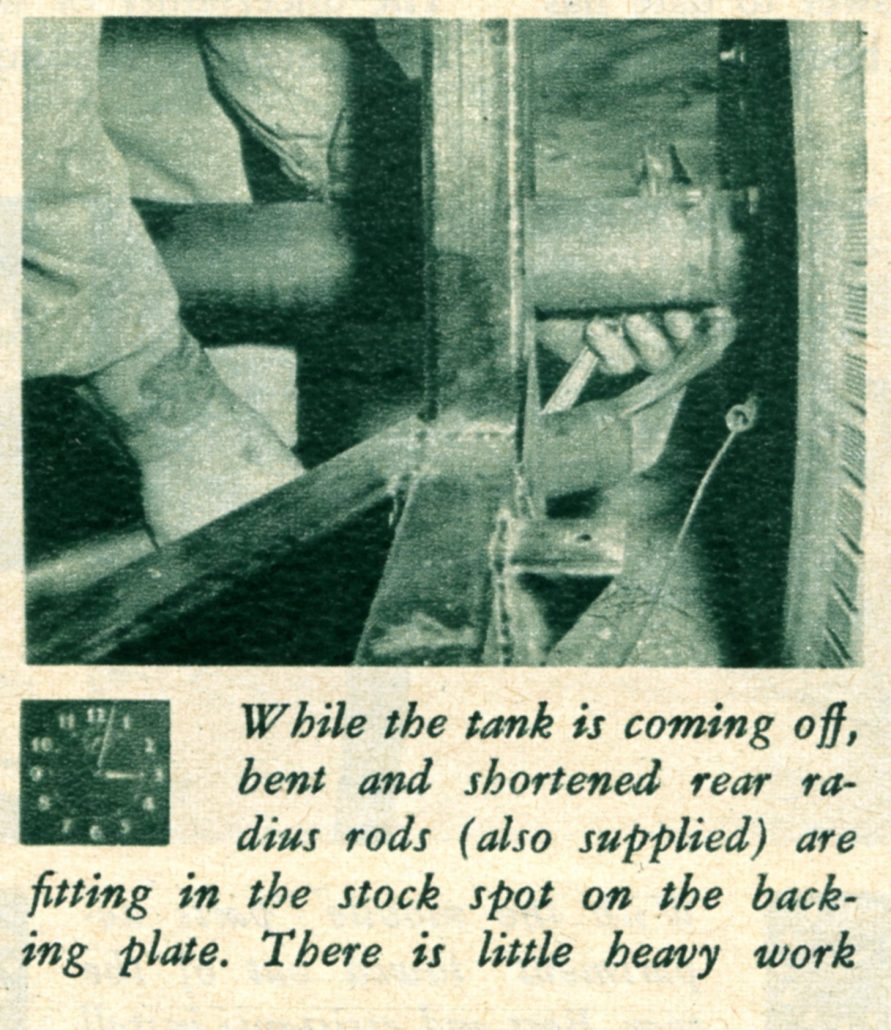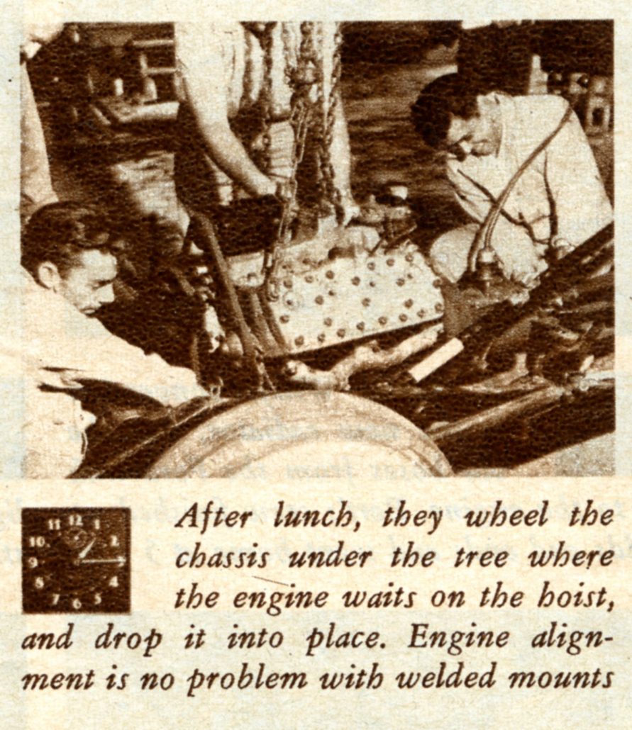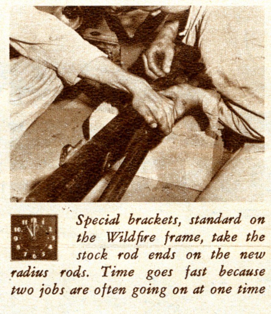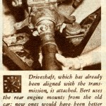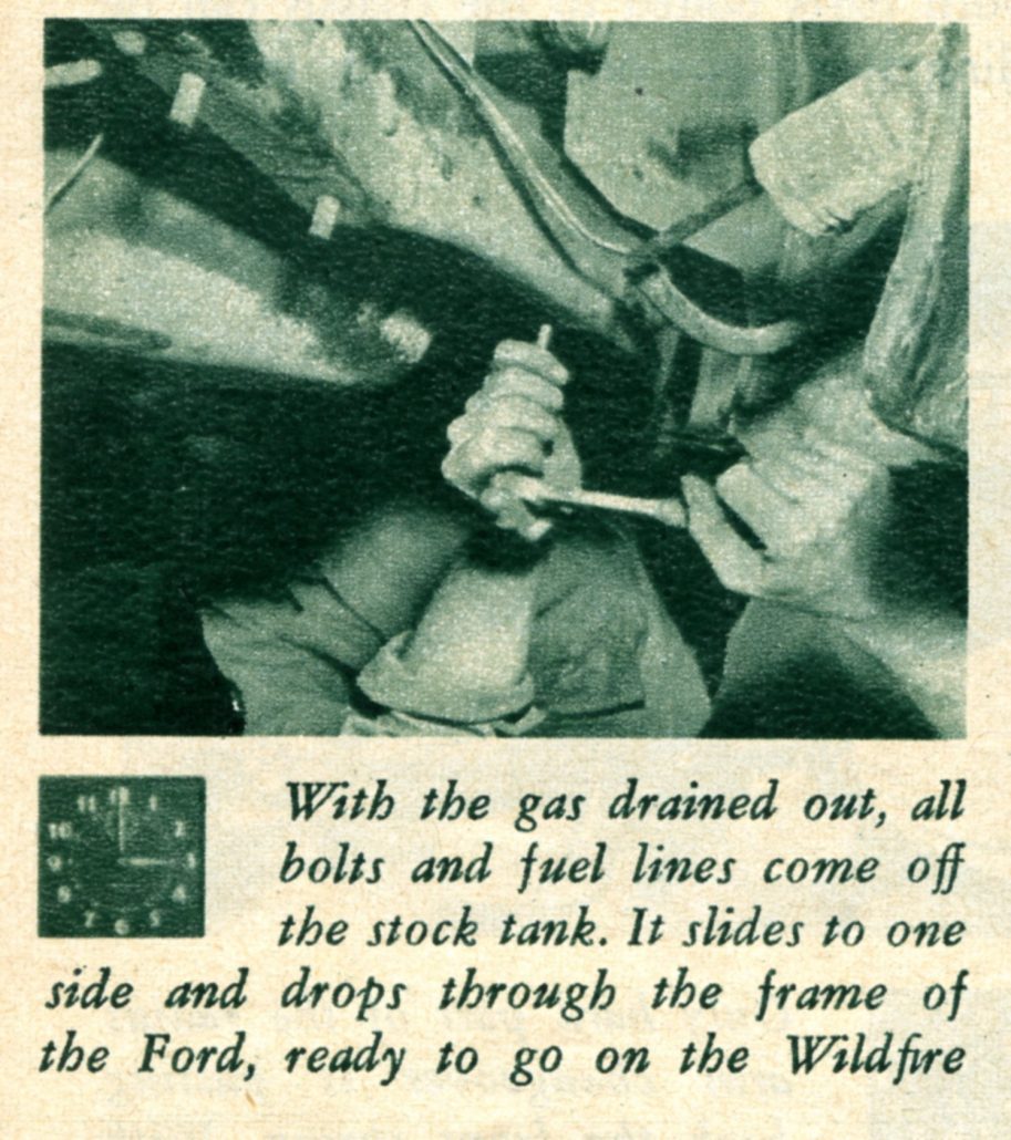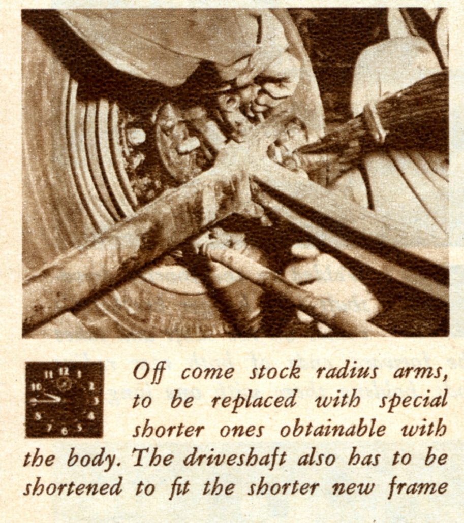 In This Picture at Noon on Saturday, the Caption Reads, “Shortened Driveshaft, Which Came With the Body, is Bolted in Place. The Wildfire’s Frame is Shorter than Stock to Give Better Handling. The Engine is Farther Back.”