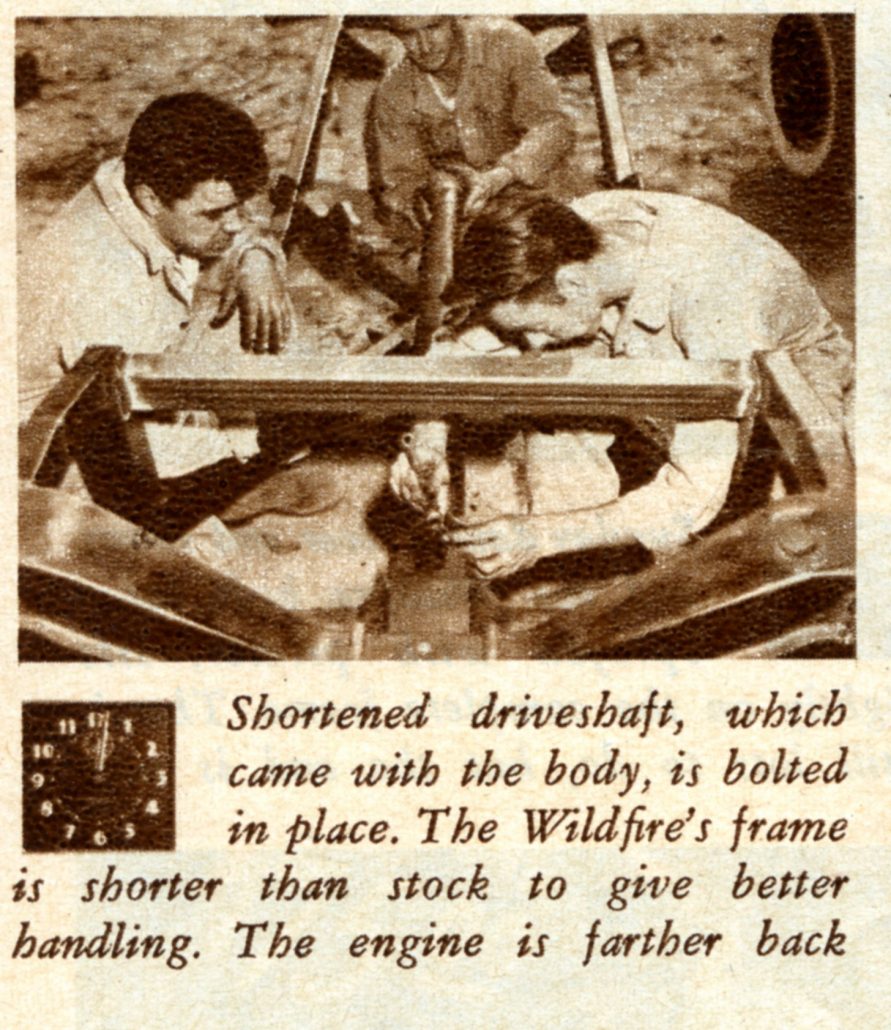 - In This Picture at Noon on Saturday, the Caption Reads, “Shortened Driveshaft, Which Came With the Body, is Bolted in Place. The Wildfire’s Frame is Shorter than Stock to Give Better Handling. The Engine is Farther Back.”