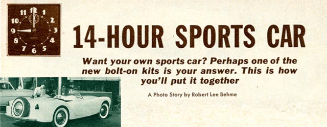 The article I’m sharing today shows all us how to build one of these “Specials” in just 14 hours or less. The first thought that sprang into my mind as I prepared to read the article was that the accepted amount of time that it took to build a fiberglass car back in the 1950’s was about 2000 hours. Perhaps 3000 hours if you built your own body too. So, I’m a bit suspicious (as I should be) about being able to complete most of one car in just 14 hours. It takes me 1-2 hours just to clean a car, so 14 hours seems like a “pie in the sky”.
