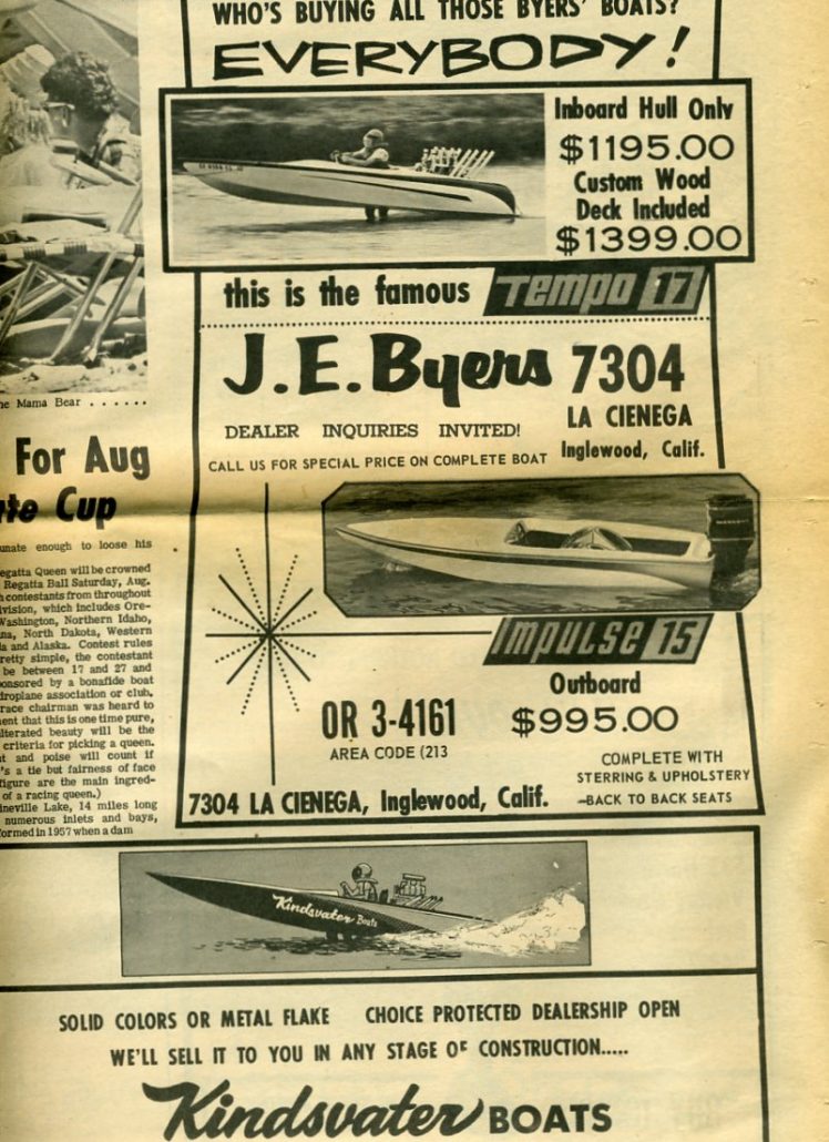 In all of the literature we’ve collected, the latest date of anything “car-related” from Jim Byers is February 1963. This was a transition time for Jim Byers and he was moving more and more into “V-Drive” fiberglass boats – many of which still exist today.