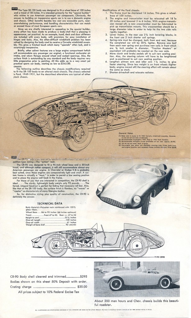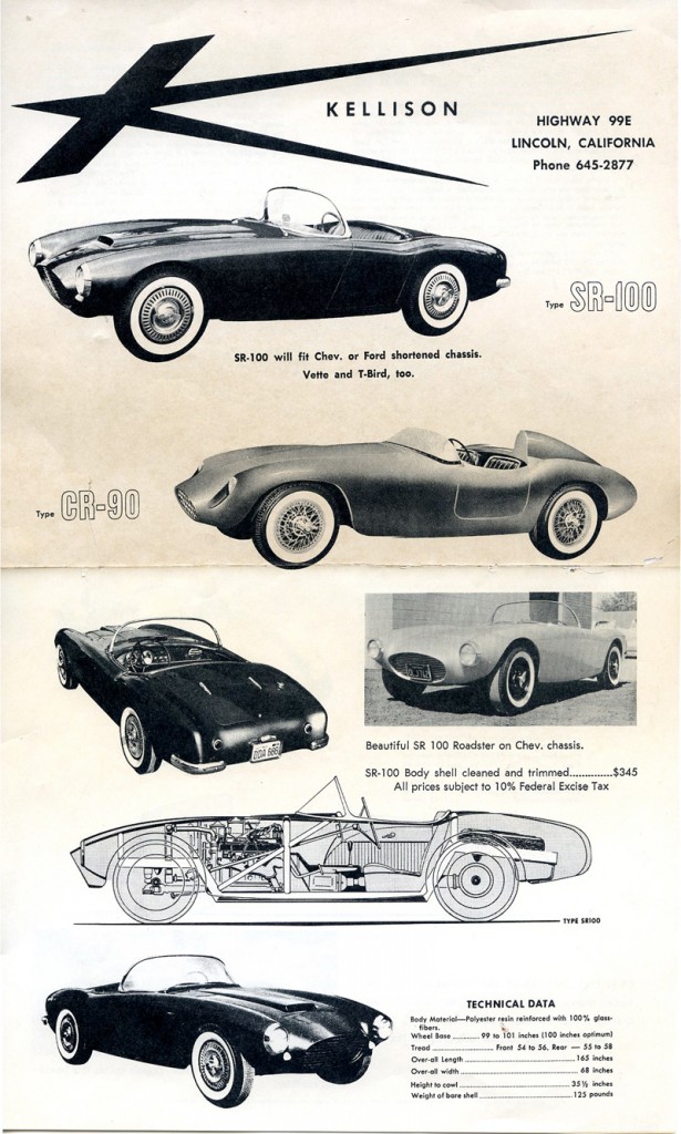 So far, we at Forgotten Fiberglass have established that around 1964 Kellison started offering the SR-100. And until recently, the only car that ever showed up on Kellison literature was the SR-100. The Byers CR-90 was not to be found in Kellison sales flyers or catalogs – until our recent find.