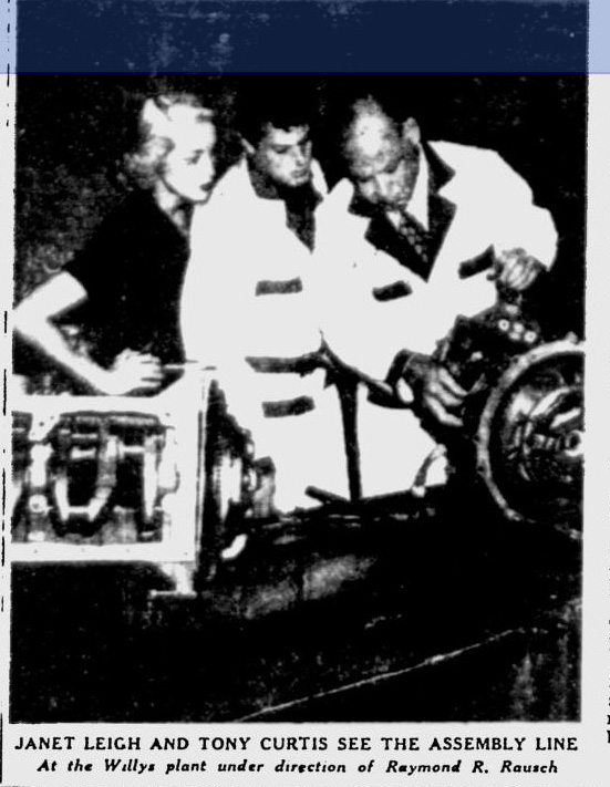 - Caption: Janet Leigh and Tony Curtis See The Assembly Line At The Willys Plant Under Direction of Raymond R. Rausch