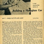 We’ll feature each of the articles in this series – individually – leading up to the March, 1956 issue.  That’s over 5 stories here at Forgotten Fiberglass.   What makes this series of 5 articles invaluable to us is that they focus and showcase photos from the development of just one sports car – the Sorrell sports car by Bob Sorrell.  It’s an amazing look at the design, development, building and execution of a single car showing some of the best techniques one could use at the time.