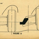 Then too, the front wheels turn so the body will have to be designed to give clearance not only when they are straight ahead but also to clear should the car hit a dip while the wheels are in a cramped position.  Figure A shows a typical independent front wheel with unequal length front suspension arms which are designed to eliminate track change during movement.