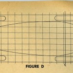 After one-half of the end view had been expanded to full size, it became a simple matter to reverse the curve for the opposite side of the templates.  Another method which commonly used at this point is a process called lofting.  This is fully described in the Trend Book and is used to transfer measurements from a scale model of clay or plaster to full scale drawings from where they are then transferred to the wood and cut for templates.