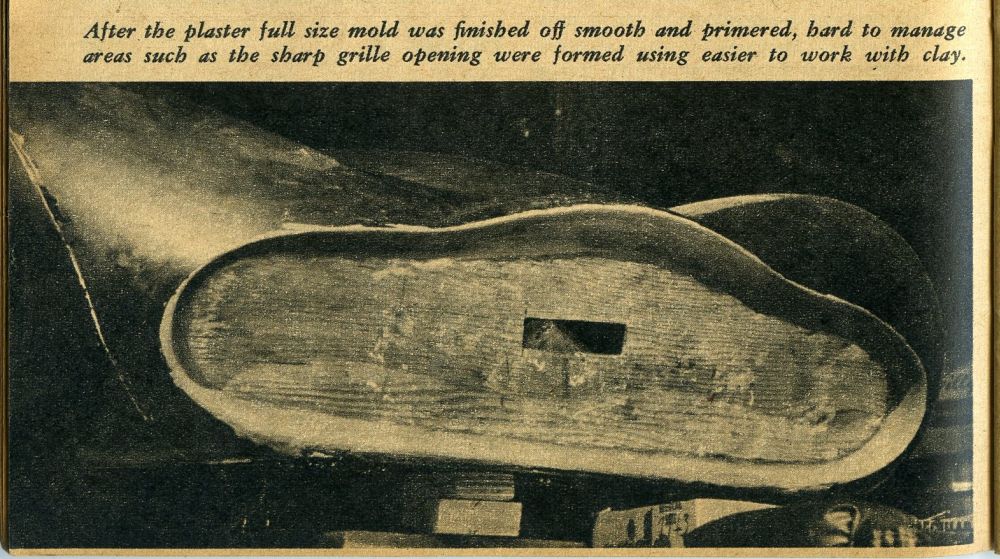 Just remember, any flaws in your full scale male mold will show up in the female mold and then be transferred to the fiberglass body.  It is easier to erase flaws in plaster or clay then to do it later on with the fiberglass body.
