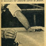 Before the plaster is applied, chicken wire or burlap should be wrapped over the paper to provide strength to the plaster and hold it together.  The entire space between the templates or stations as they are also called may be filled with plaster and then smoothed by hand or machine sanding.