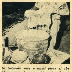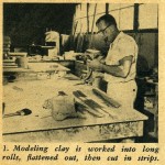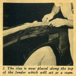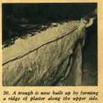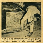 Our following photo story illustrates how the plaster splash mold is made by using one of the sides of the mold as a working example. Actually all the sections of the molds are made in this same illustrated manner. For instance, first you make one side of the female mold. The next step is to make the other side.