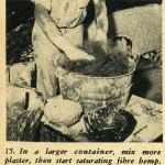 Work the complete surface over very lightly at first, coming back to where you first started and then repeat the application. Keep up this dabbling application with the plaster ‘til you have reached approximately a 1/8 to ¼ of an inch thickness. When this thickness is reached you will then start applying the hemp fiber.