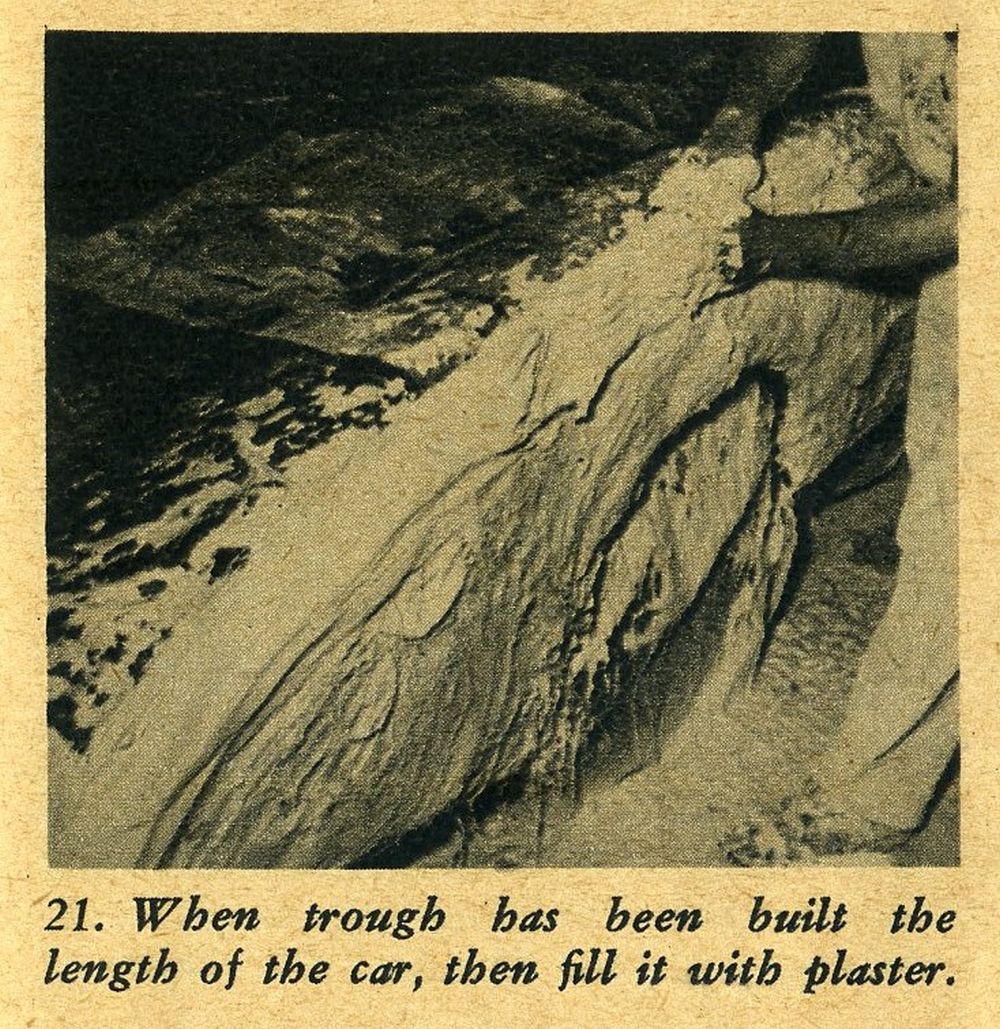 The illustration showing how to section up the car and how the sections overlap one another should be given considerable consideration before attempting to plaster. No one section is removed ‘til the completed mold has been plastered, then they are removed one by one from their various positions.