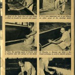 Now comes the wooden framework that is made up from 2×4 lumber. The framework should be long enough to run the distance of the mold. The framework is placed up next to the side of the mold or over the top, whatever the case may be, and is tied to the mold by making up saturated hemp stringers. The following photo story will illustrate this particular operation.