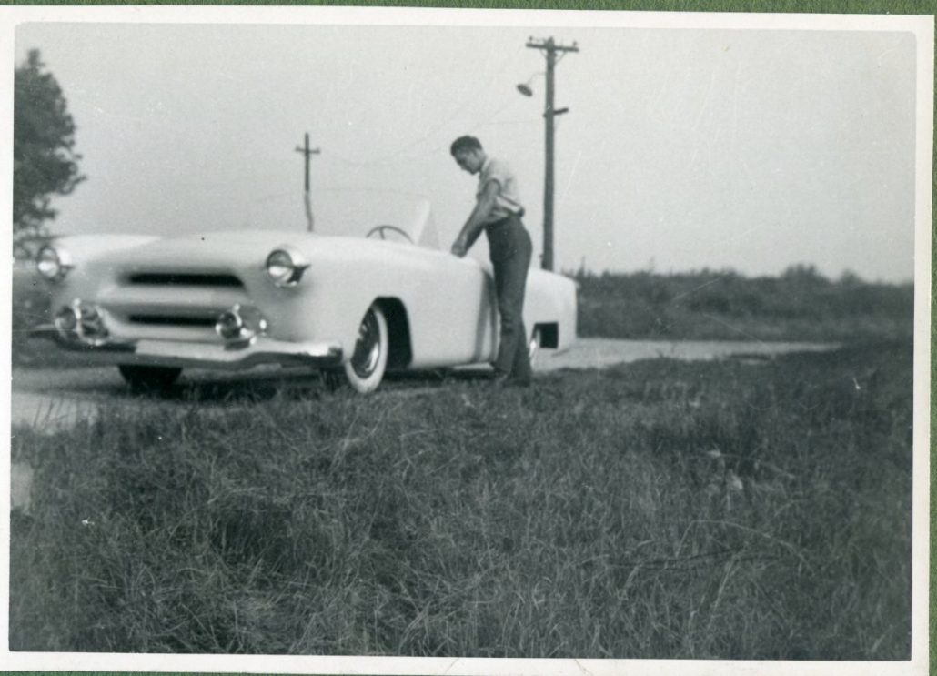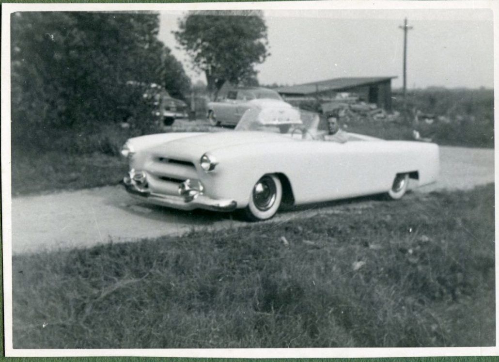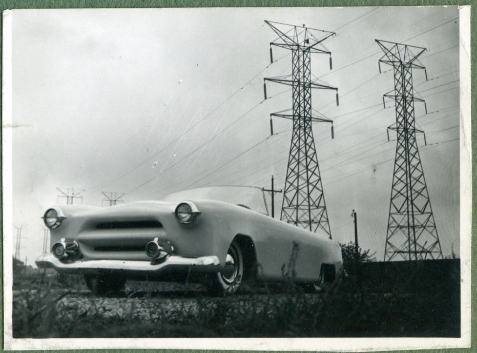 In the collection Rick Ruth had found, were three pictures and one short article on a nicely designed early fiberglass sports car. Here’s what the newspaper article said (undated and unknown paper):