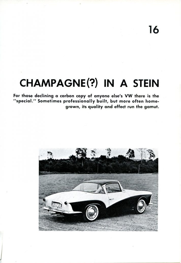 For those declining a carbon copy of anyone else’s VW, there is the “Special.” Sometimes professionally built, but more often home-grown, its quality and effect run the gamut.