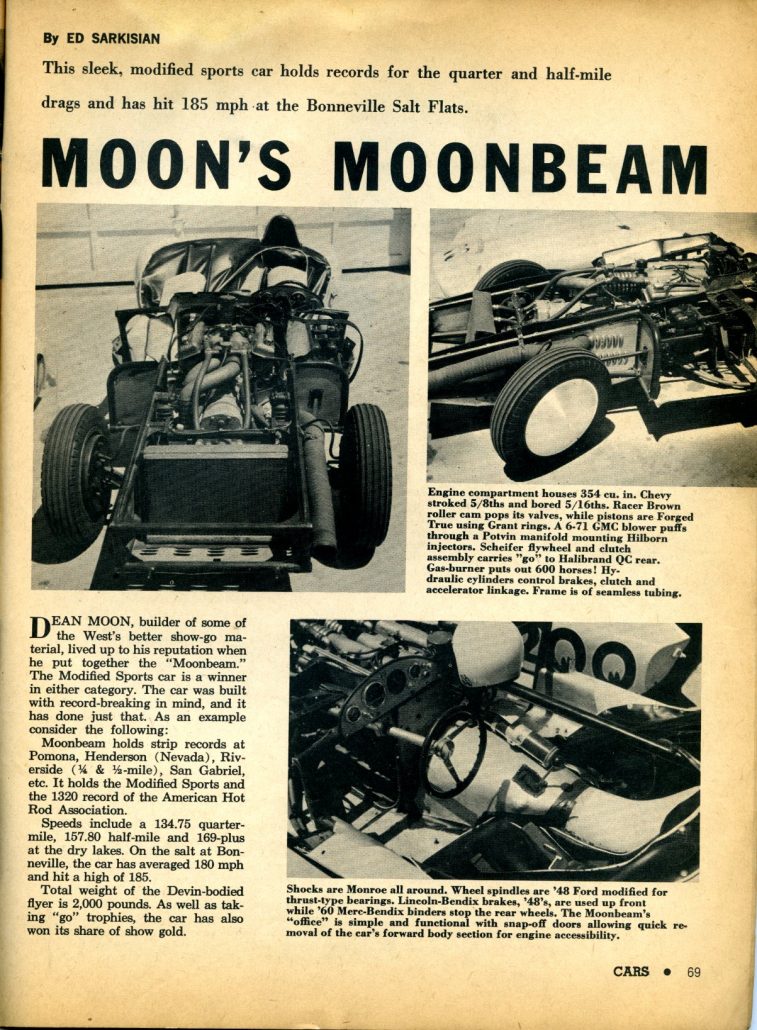 So get your coffee and turn down the tv. Let’s dig into the story from Cars Magazine about Dean Moon’s Devin bodied “Moonbeam.”