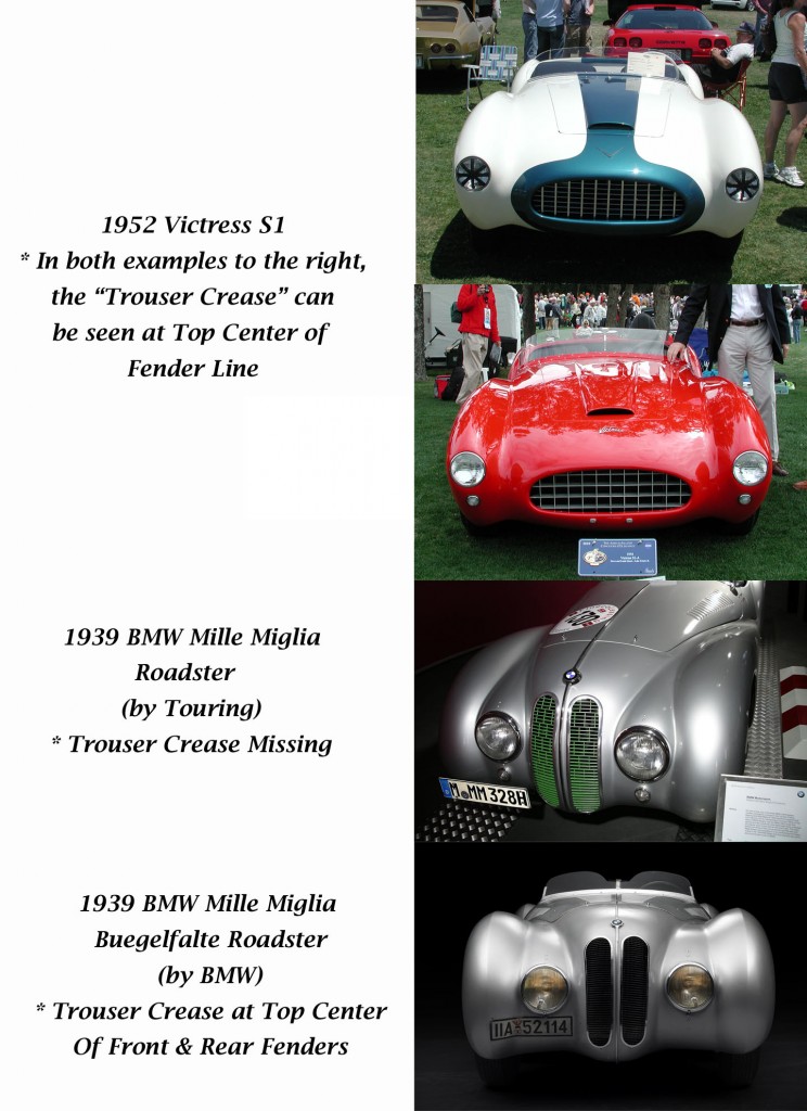 Here The Front Profile Is Shown On The Victress And Both Types of BMW 328 MM Roadsters. The “Trouser Crease” Is Only Shown On The Victress and Buegelfalte Roadsters.